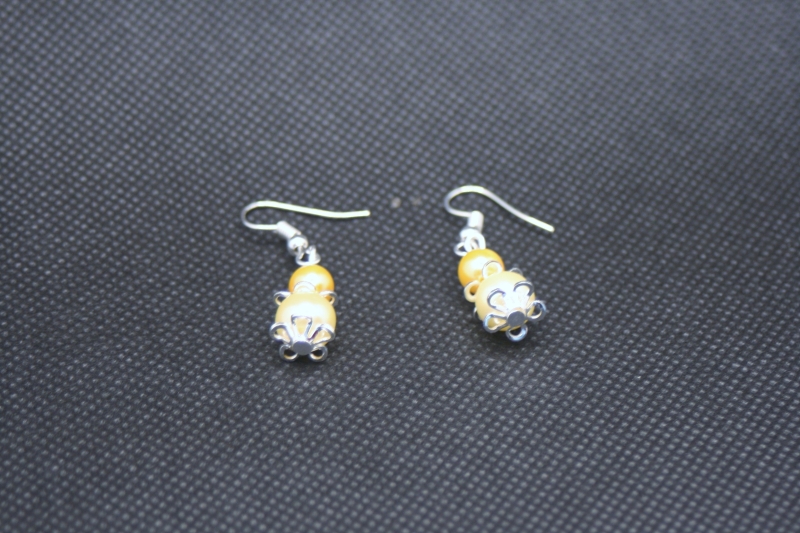 Ohranhänger mit je zwei Perlen in Goldgelb