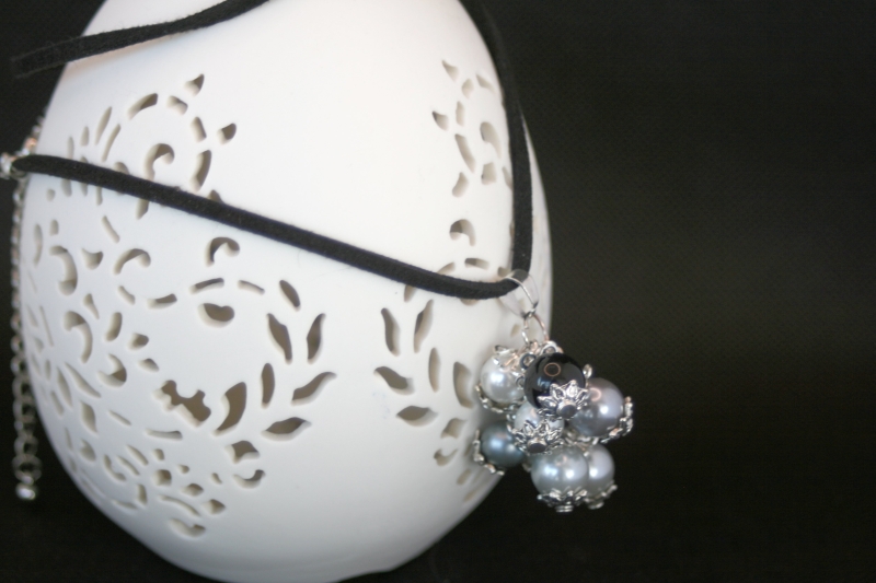 Wunder schöner Perlenanhänger in Tropfenform mit Baumwollband.