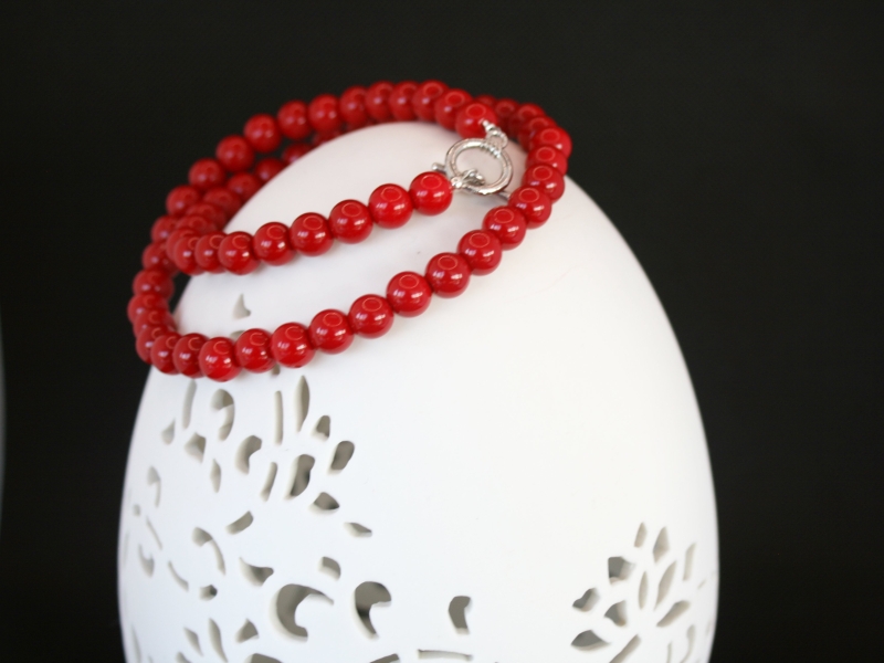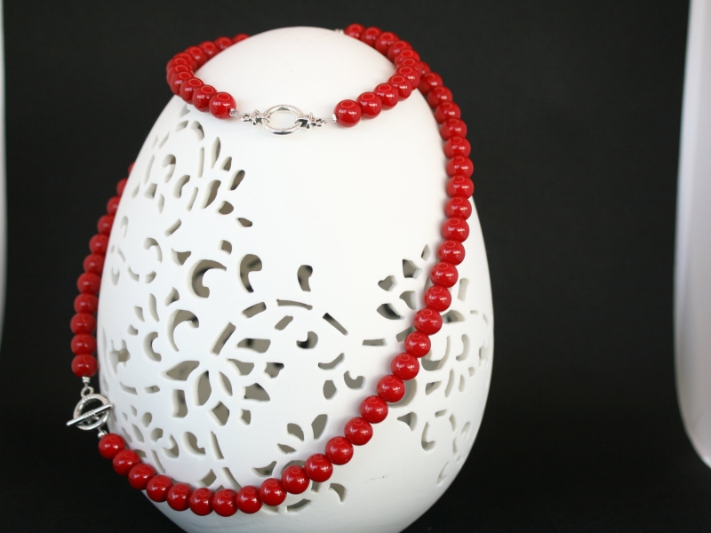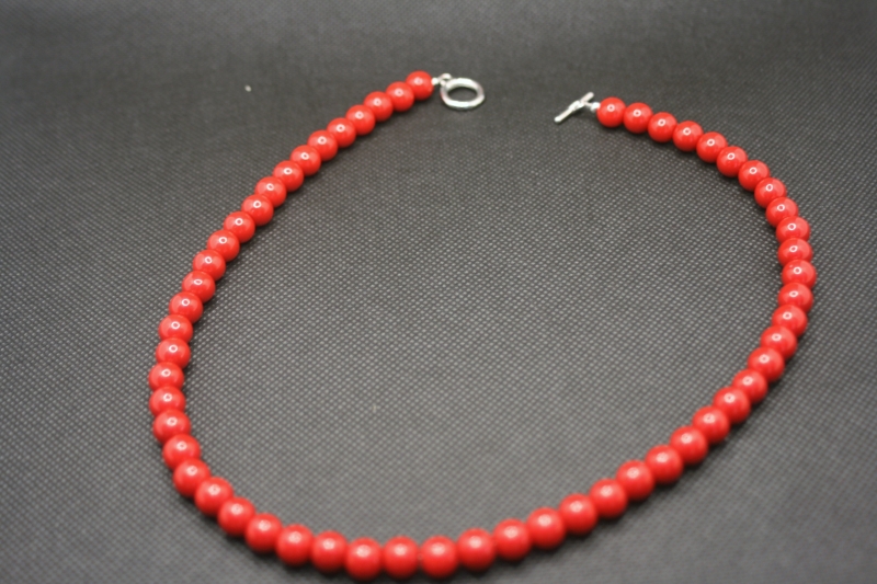 Die Kette besteht aus 8 mm Glasperlen in einen schönen kräftigen Rot.