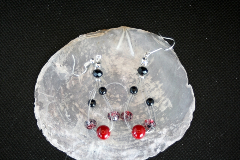 Schöne Kombination aus Glas- und Acrylperlen in Schwarz-Rot.