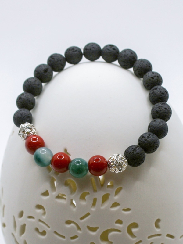 Wunderschönes Armband mit Lava-und Glasperlen. Ergänzt mit zwei Strassperlen, die das Armband funkeln lassen.