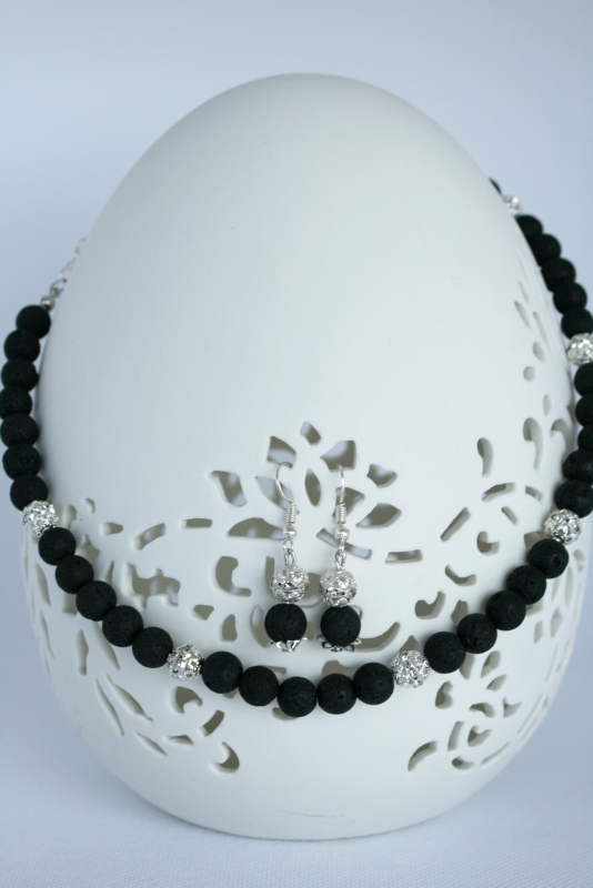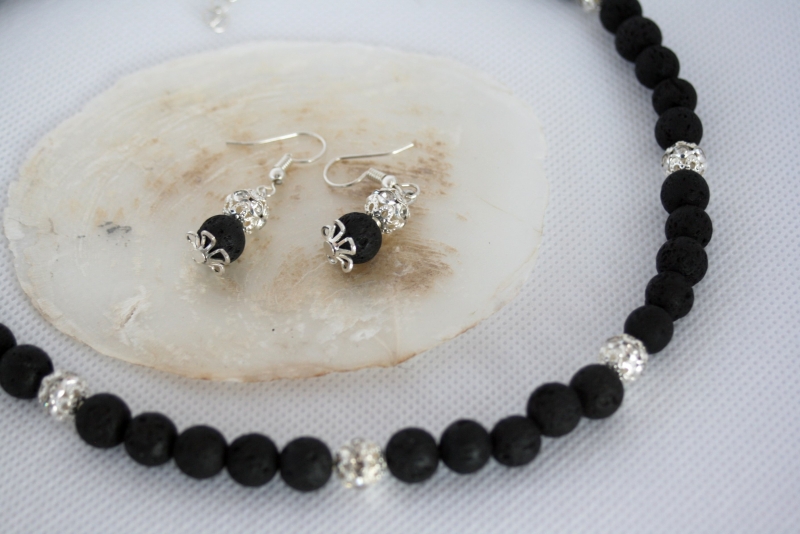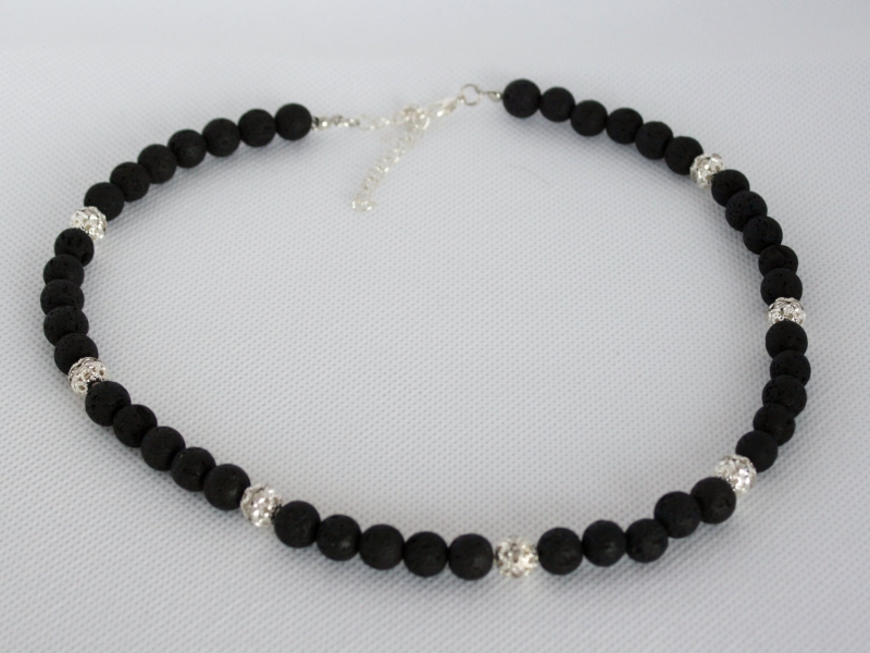 Die Kette ist mit trendigen Lavaperlen und funkelnden Strassperlen mit 8 mm gefertigt.