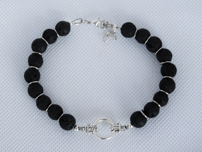 Ein Armband aus Lavaperlen mit Binderinge und dazwischen ein Verbinder als Blickfang.