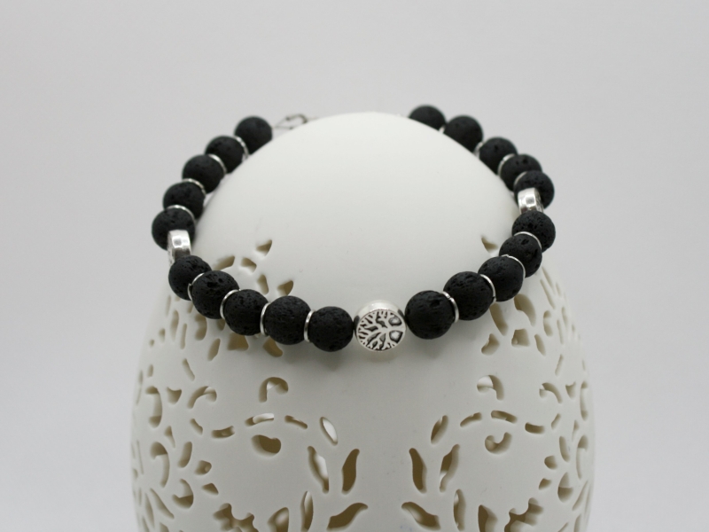Wunderschönes Armband aus Lavaperlen mit drei Zwischenperlen in Form eines Lebensbaumes.