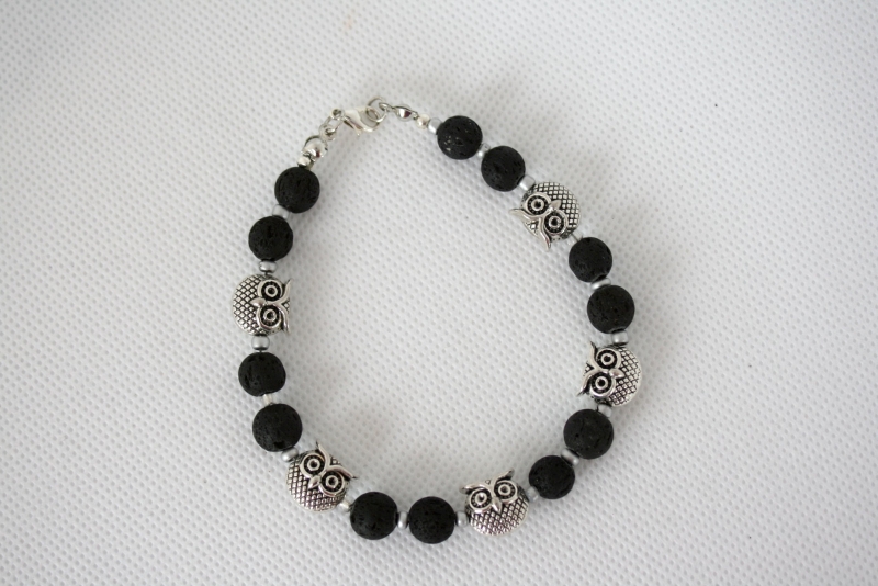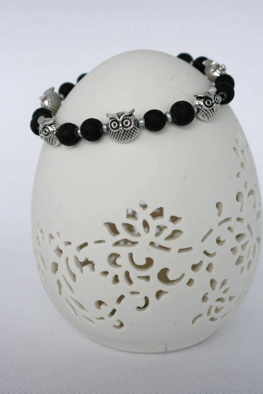Eines meiner Lieblingsstücke finden sie hier. Ein schickes Armband mit Lavaperlen und niedlichen Eulen.