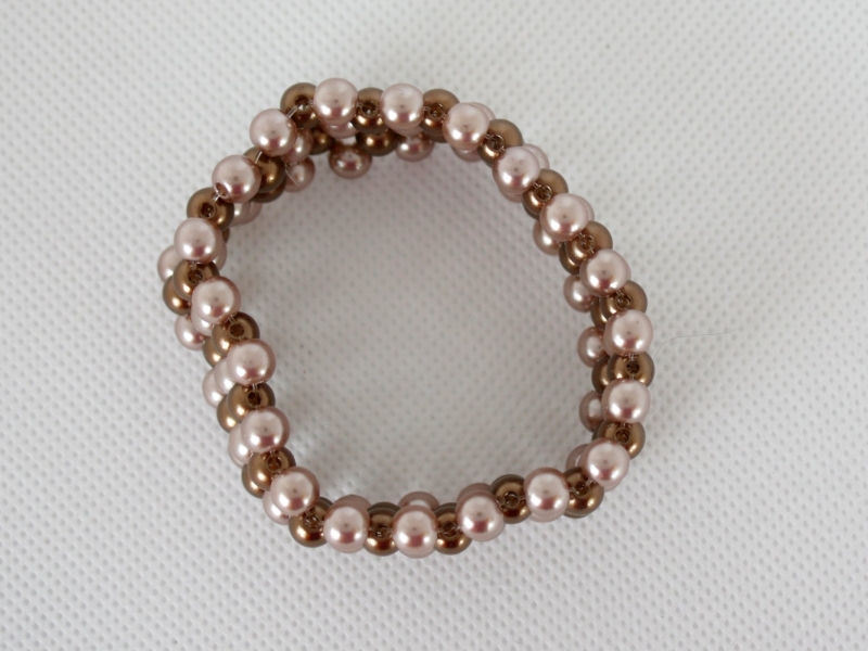 Das Armband ist fünfreihig mit 4 mm und 8 mm Perlen und einem elastischen Naylonband gearbeitet.