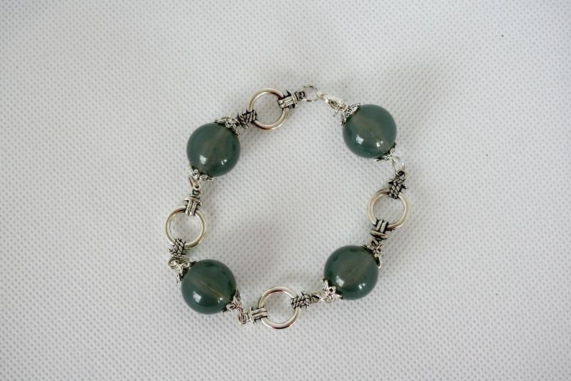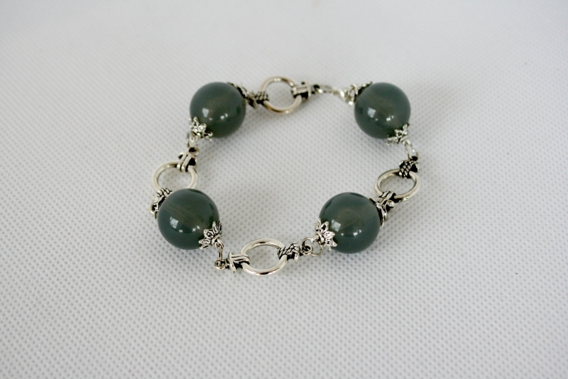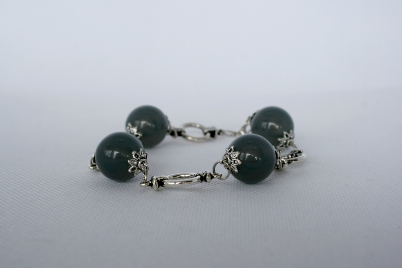 Dieses Armband besitzt ein ausgefallenes Design. Die 18 mm großen Perlen und die Verbindungsstücke machen es ganz besonders.