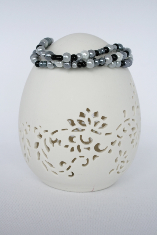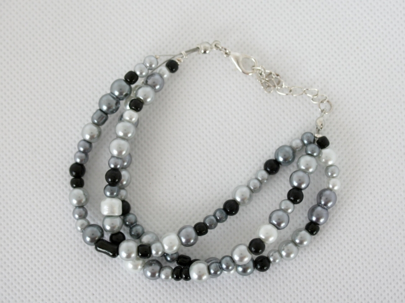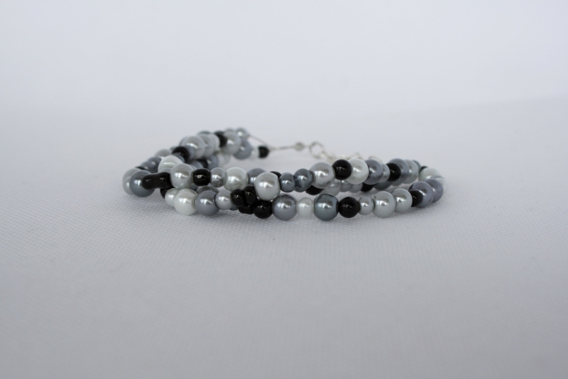 Armband Glasperlen dreireihig schwarz-grau-silber